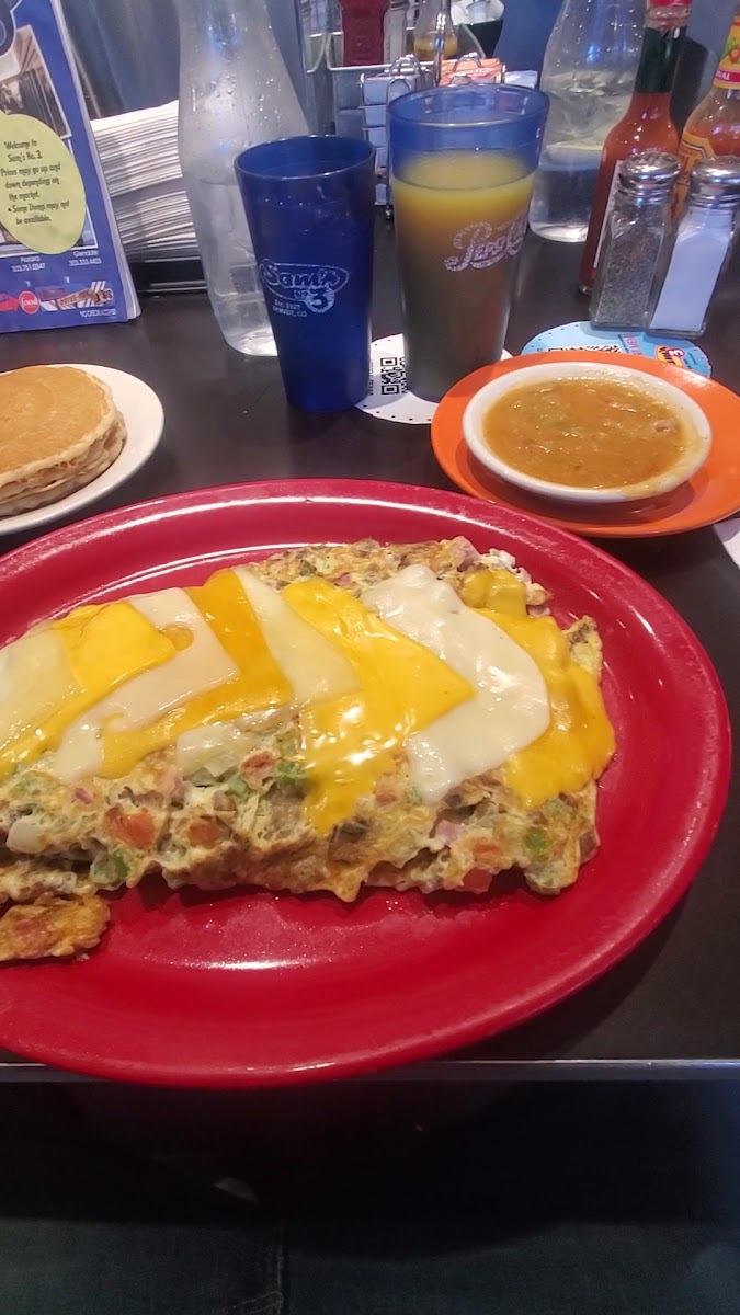 The pancakes at Sam's are a must-try, too. If you’re indecisive, opt for the playful Pancake Sandwich featuring fluffy pancakes topped with eggs and your choice of breakfast meat! For pancake aficionados, the Stack O' Minis invites you to indulge with a towering pile of deliciousness, perfect for sharing (or not!). Each pancake is sweet and crispy, promising a delightful moment of joy with every forkful.